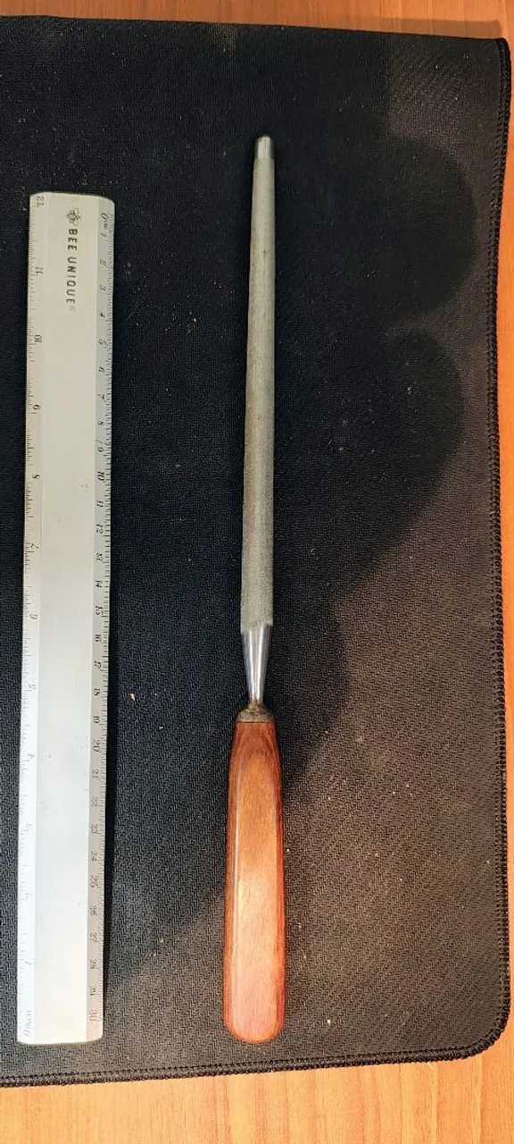 Afiador de facas afiador cabo de madeira aço Comprimento 34cm Década 70 Ótimo estado