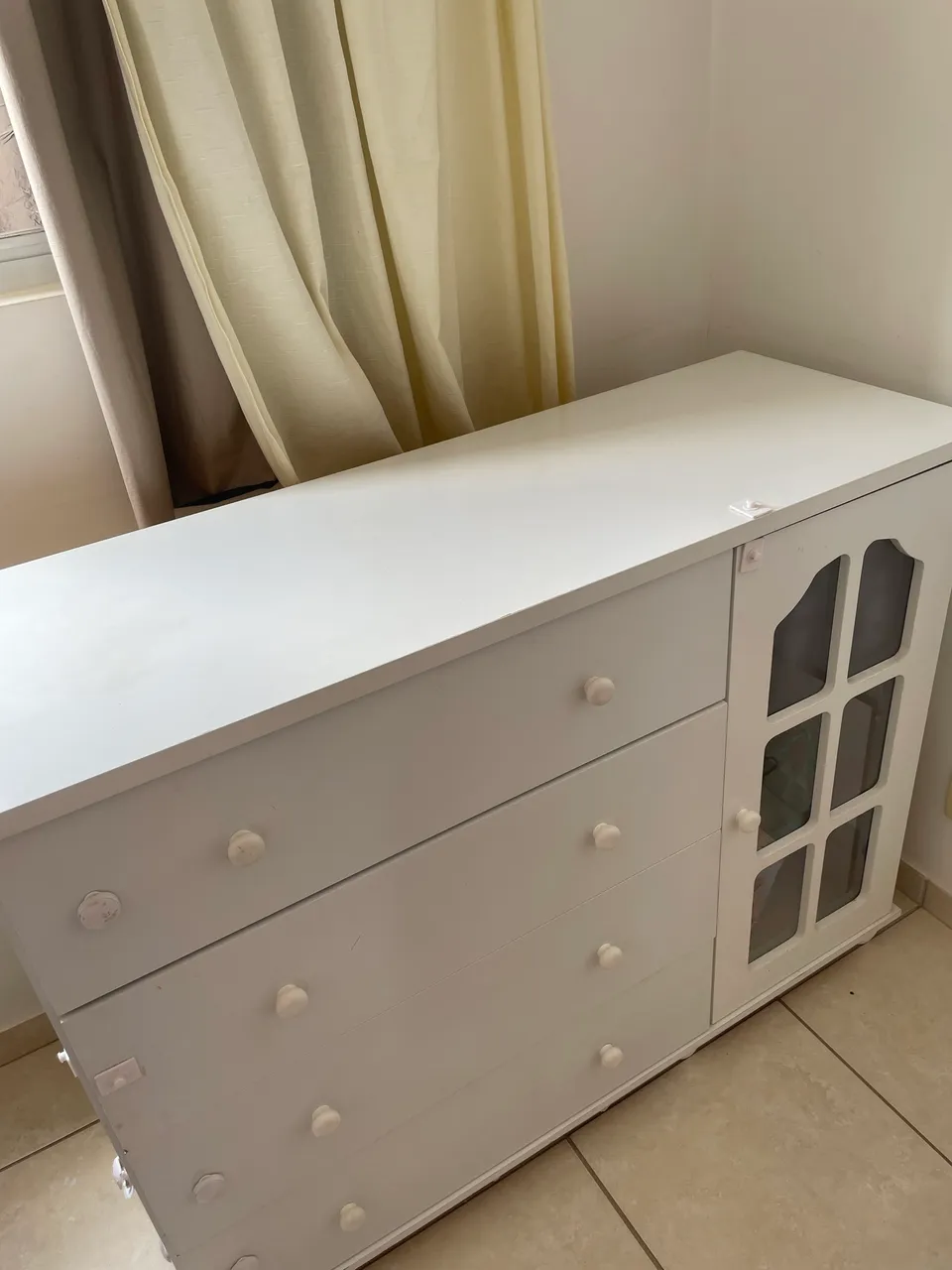Linda cômoda infantil branca, perfeita para organizar o quarto do seu bebê! Design moderno e amplo espaço interno para guardar roupas e acessórios.