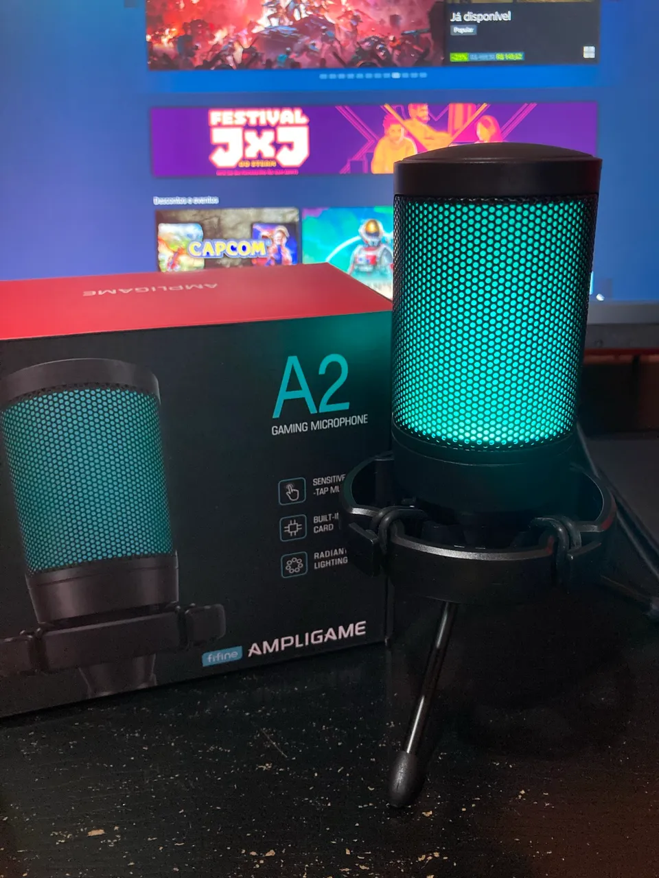 Microfone Fifine A2 AmpliGame para uma experiência de áudio imersiva! Com design moderno e iluminação radiante, este microfone gamer oferece alta sensibilidade e qualidade sonora. Perfeito para suas lives e gravações!