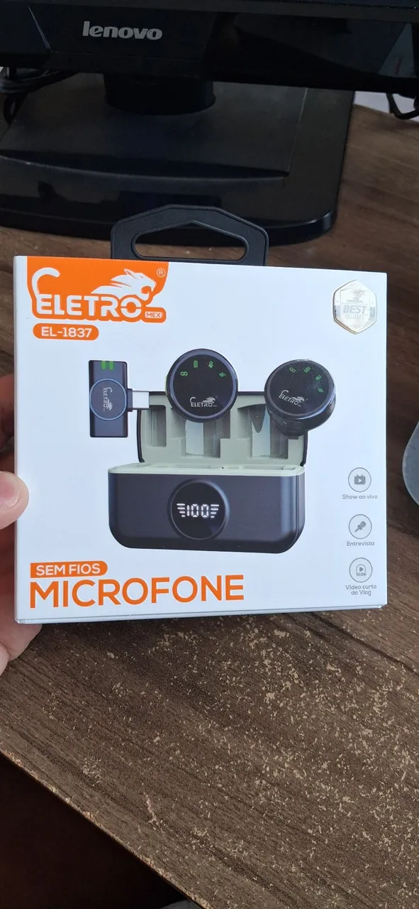 Microfone de lapela sem fio ELETRO EL-1837, perfeito para entrevistas, vídeos e transmissões ao vivo. Qualidade de áudio superior e fácil de usar, ideal para quem busca praticidade e desempenho.