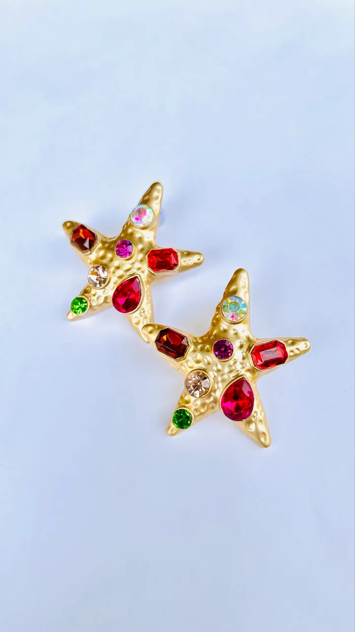Brinco de estrela com design elegante e charmoso, perfeito para adicionar um toque de brilho ao seu visual. Detalhes em pedras coloridas que capturam a luz, ideal para quem busca um acessório único e estiloso.