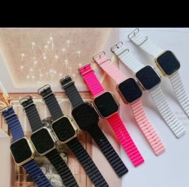 Smartwatches com design moderno e pulseiras coloridas. Perfeito para complementar seu estilo! Diversas cores disponíveis para combinar com seu dia a dia.