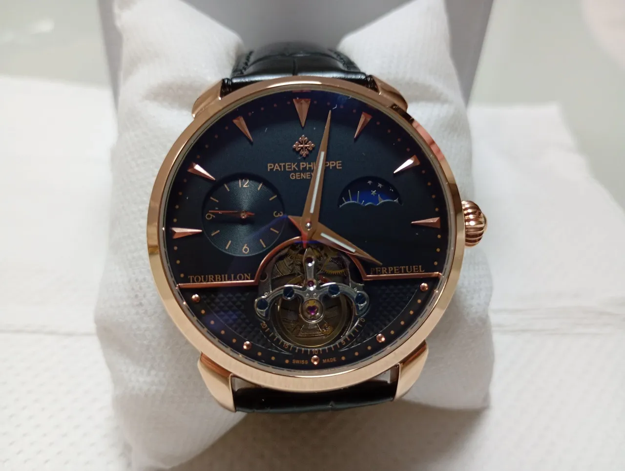 Apresentamos este elegante relógio Patek Philippe rose,um símbolo de sofisticação e precisão. Com design impecável e detalhes refinados, este relógio é perfeito para quem busca exclusividade e estilo. Uma verdadeira joia para valorizar seu pulso!