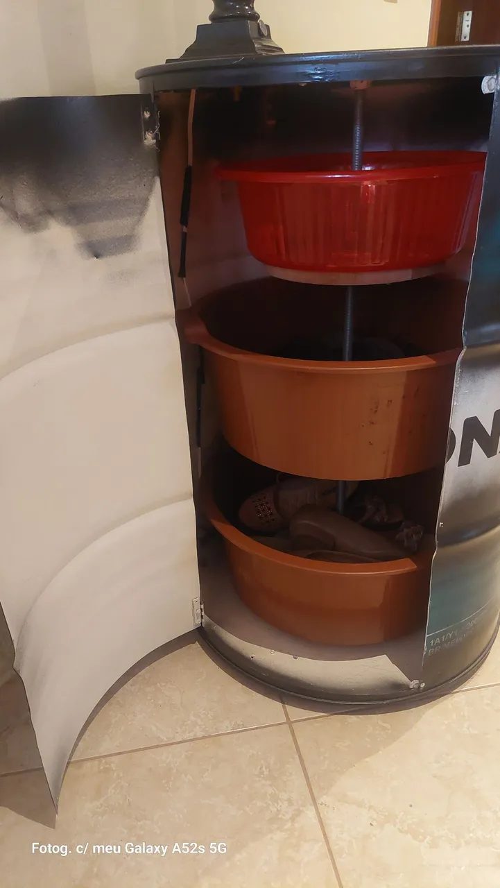 Com 3 compartimentos giratórios internamente.