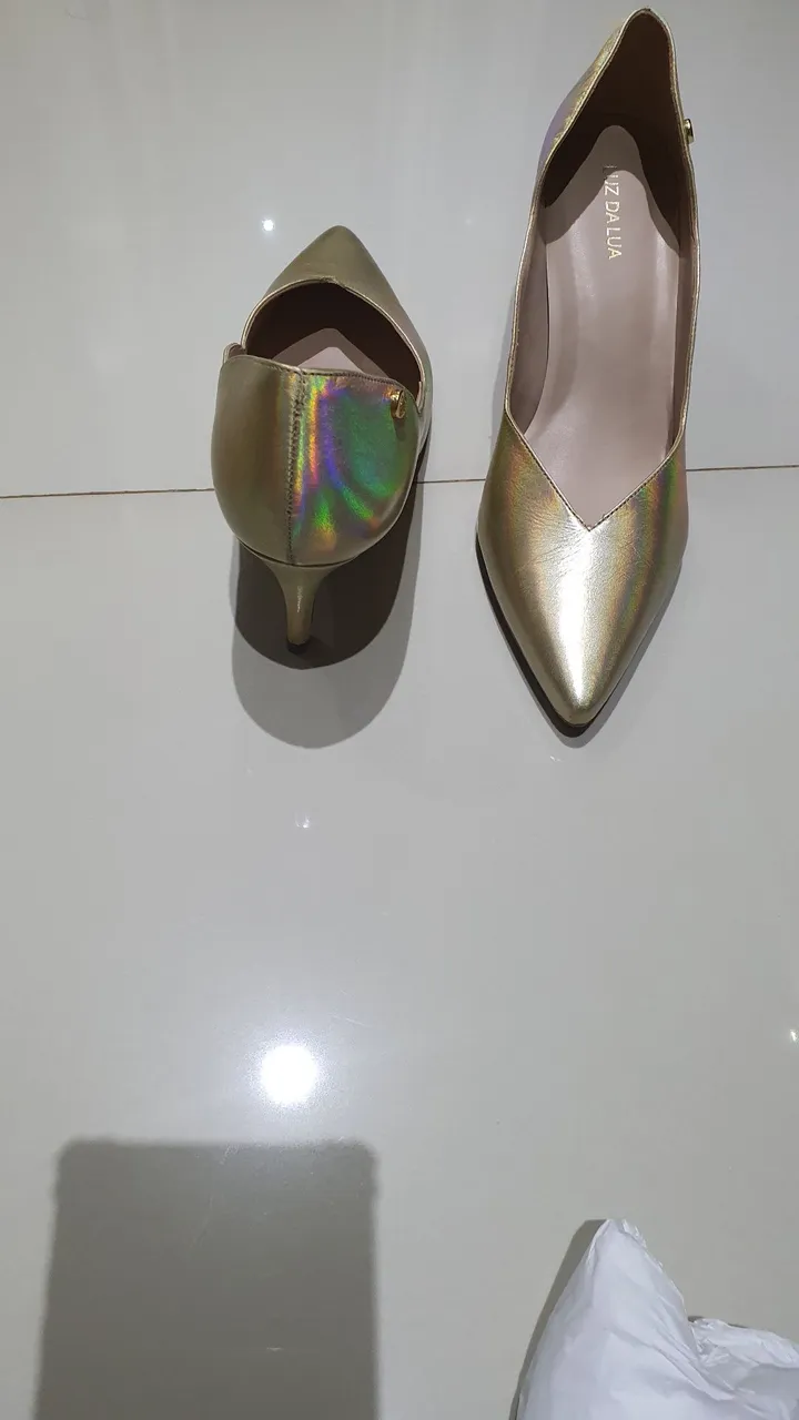 Desfile com elegância! Este sapato dourado é a combinação perfeita de estilo e sofisticação. Seu design moderno e acabamento impecável garantem um visual impactante em qualquer ocasião. Sinta-se confiante e radiante com este calçado que irradia glamour.