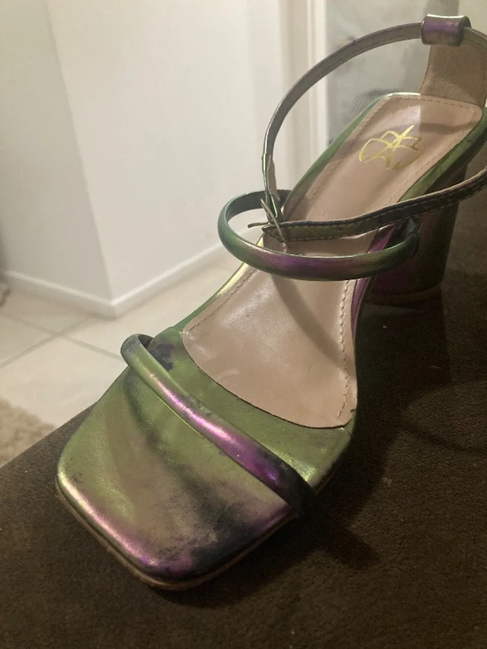 Sandália metalizada moderna, perfeita para festas e eventos. Conforto e estilo em um só calçado.
