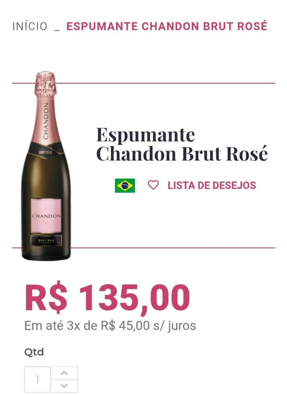 Desfrute do requinte e da sofisticação com o Espumante Chandon Brut Rosé. Ideal para celebrar momentos especiais, este espumante encanta com suas borbulhas finas e aroma delicado.