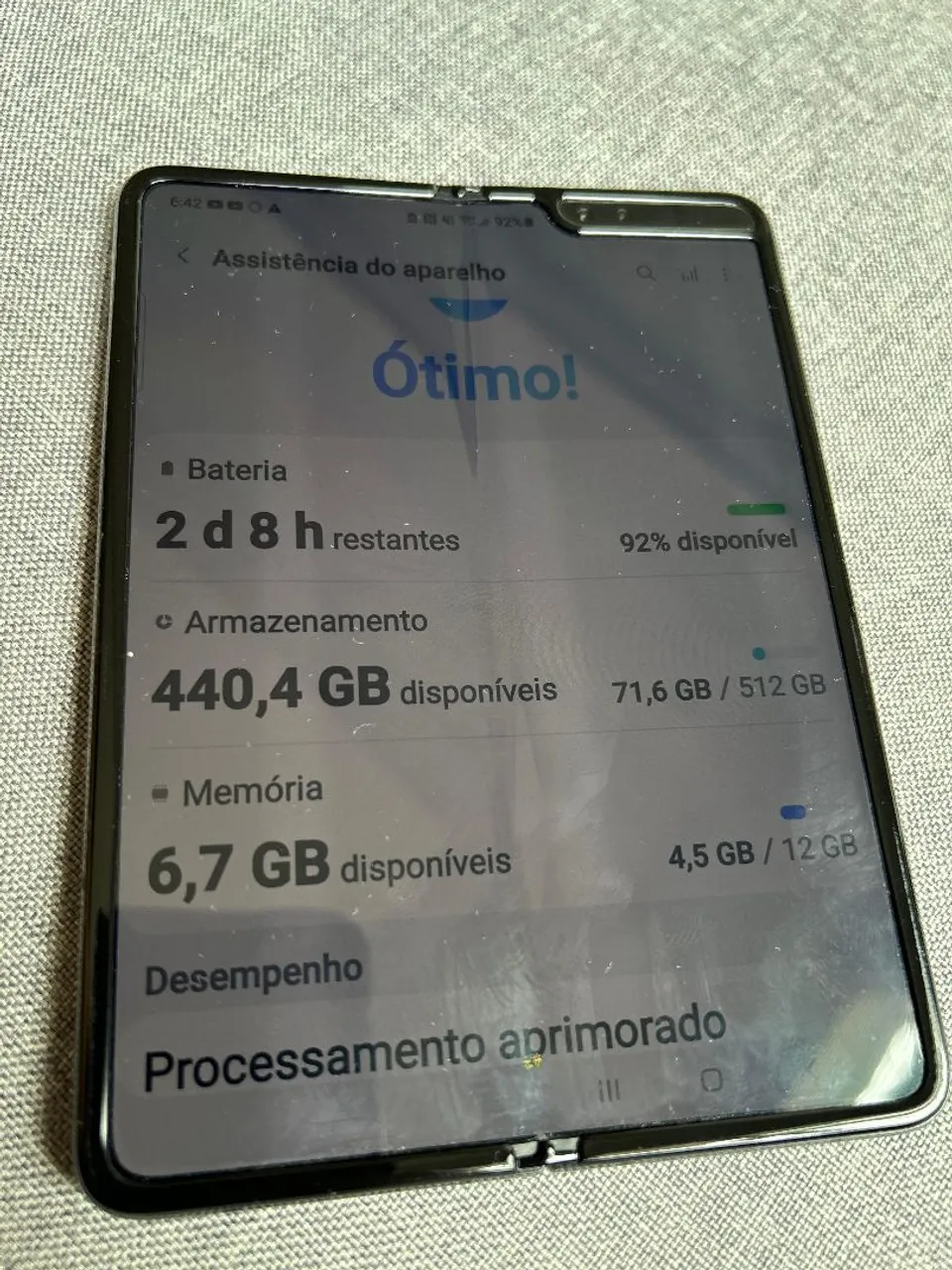Samsung Galáxia Fold 4 , funcionando perfeitamente, tem apenas um trincando na parte traseira .