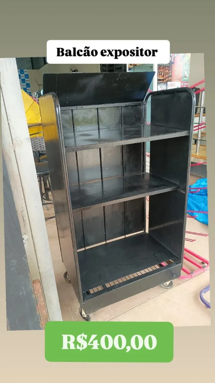Balcão expositor ideal para expor seus produtos de forma organizada e atrativa. Possui prateleiras espaçosas e design moderno, perfeito para otimizar o espaço da sua loja ou comércio.