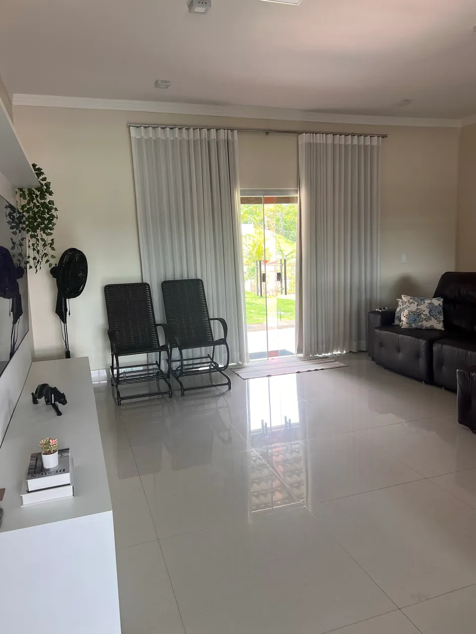 Casa com 3 quartos, 2 suítes , 5 banheiros, sala , cozinha com dispensa, área gourmet, área de serviço piscina, sauna .Tem um poço artesiano