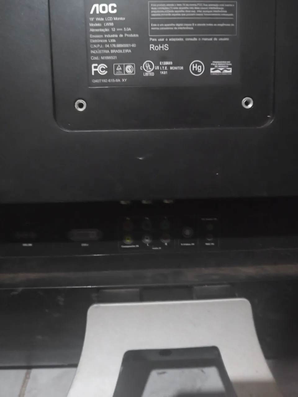Monitor AOC 19 polegadas ..falta a fonte .