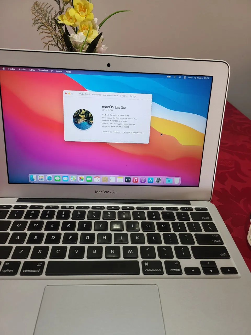 MacBook Air 11 polegadas, início de 2014, com processador Intel Core i5 de 1,4 GHz, 4 GB de RAM e 128 GB de armazenamento. Ótimo estado de conservação, funcionando perfeitamente.