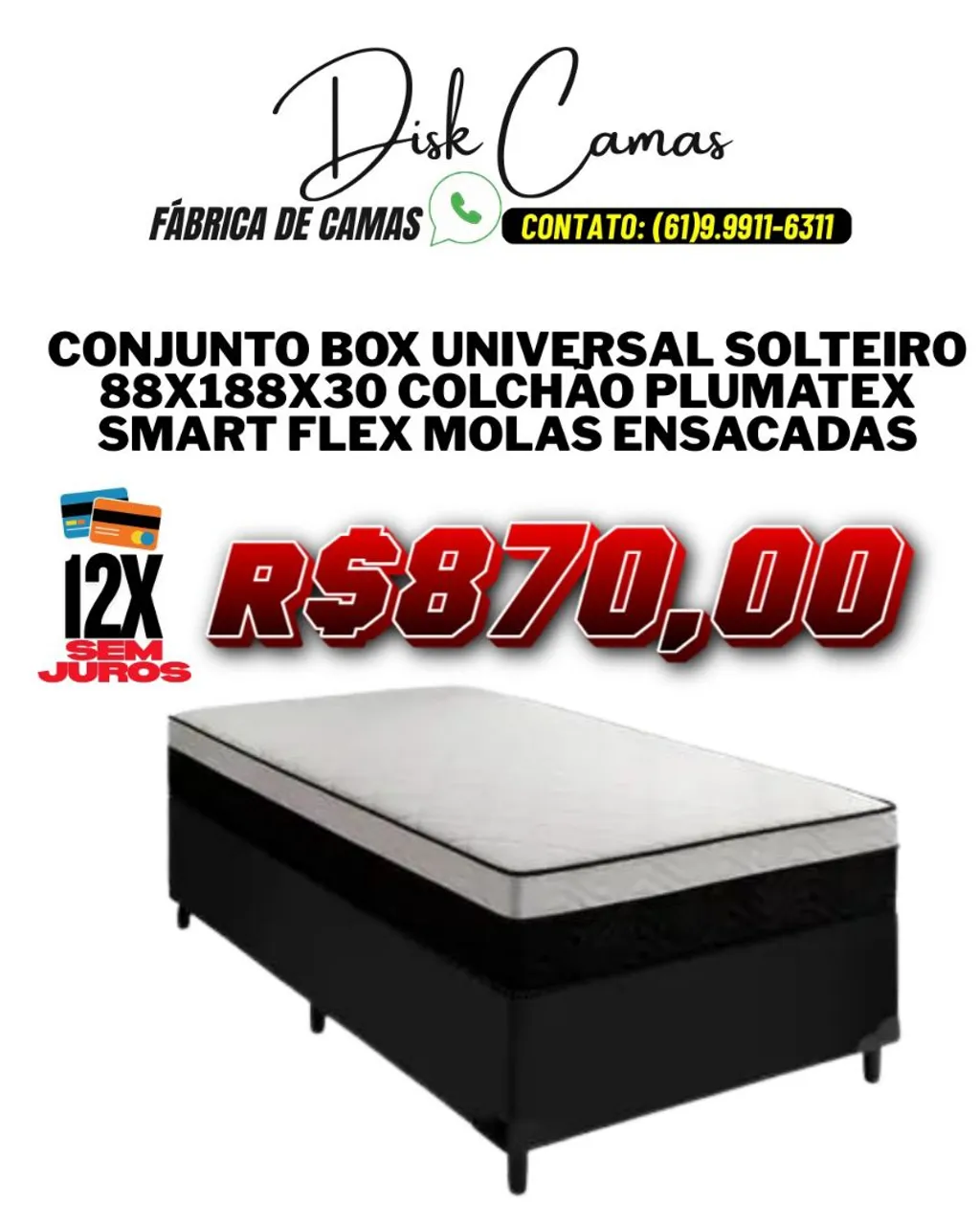 Conjunto Box Universal Solteiro com colchão Plumatex Smart Flex Molas Ensacadas. Conforto e qualidade garantidos para suas noites de sono. Design elegante e durabilidade para transformar seu quarto.