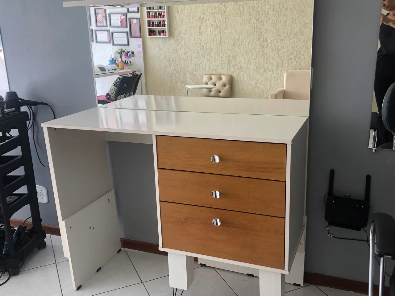 Penteadeira semi nova, com iluminação. Três gavetas, espelho, em boas condições.