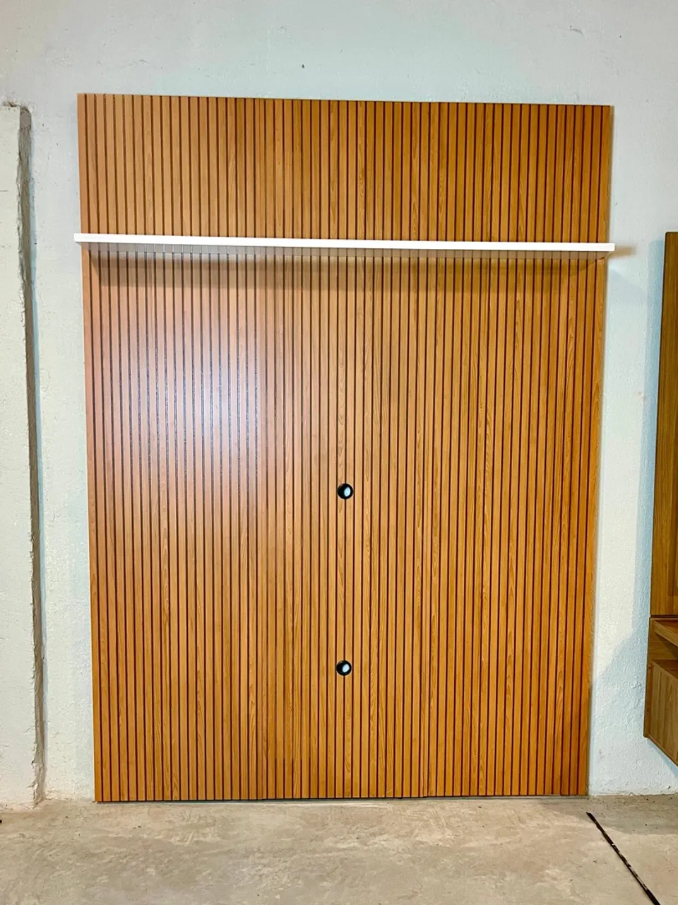 Painel Ripado de Madeira com Prateleira Para tv de 65 Polegadas