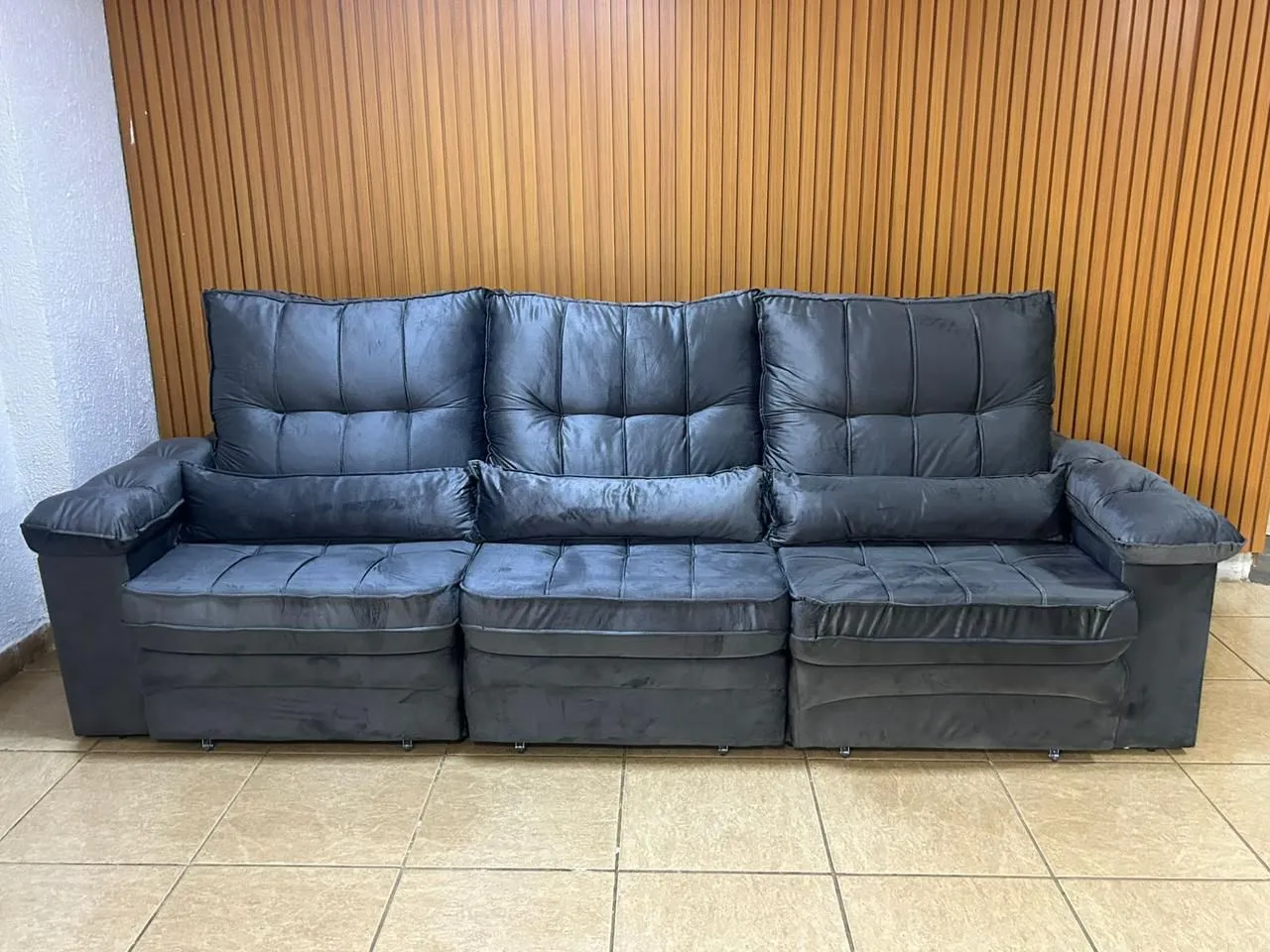 Estofado Retrátil e Reclinável C/ Molas Bonnel Veludo - 3 Módulos