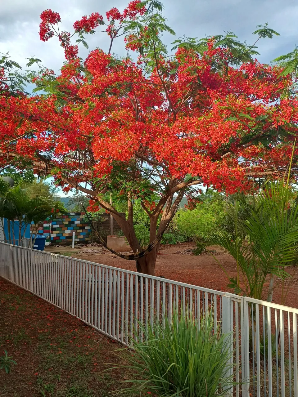Pomar produzindo jabuticaba, pinha, siriguela, graviola, pitanga, ameixa amarela, mamão, manga, caju, amora gigante, jacá, abacateiro, dois pés de pequi produzindo muito, árvores ornamentais como flamboyant e ipês de todas as cores e outras.
